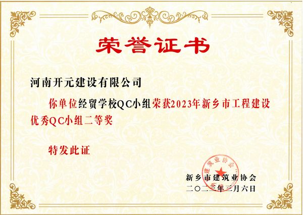 2023年3月3日,经企业推荐申报,新乡市建筑业协会初审,经新乡市工程建设**QC小组评审委员会共同审定,共有60个QC小组荣获2023年新乡市工程建设**QC小组称号。
